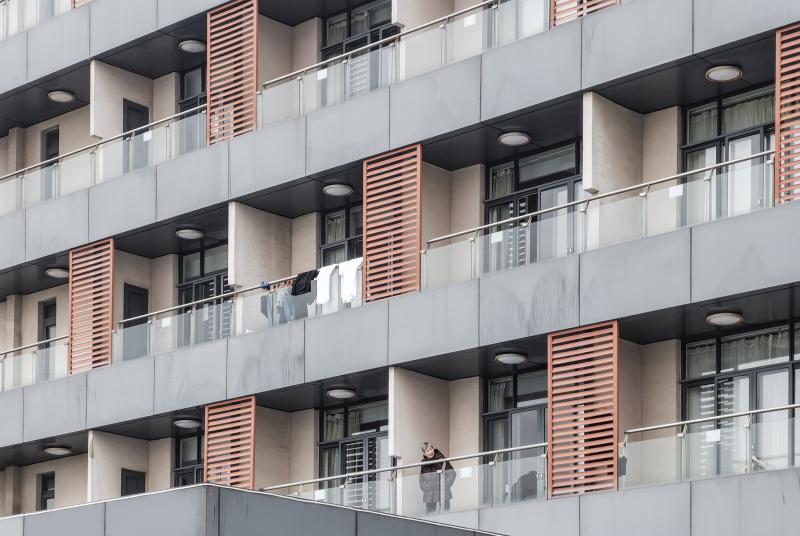 酒店阳台上,留观人员正四处张望。 胡幸阳 摄
