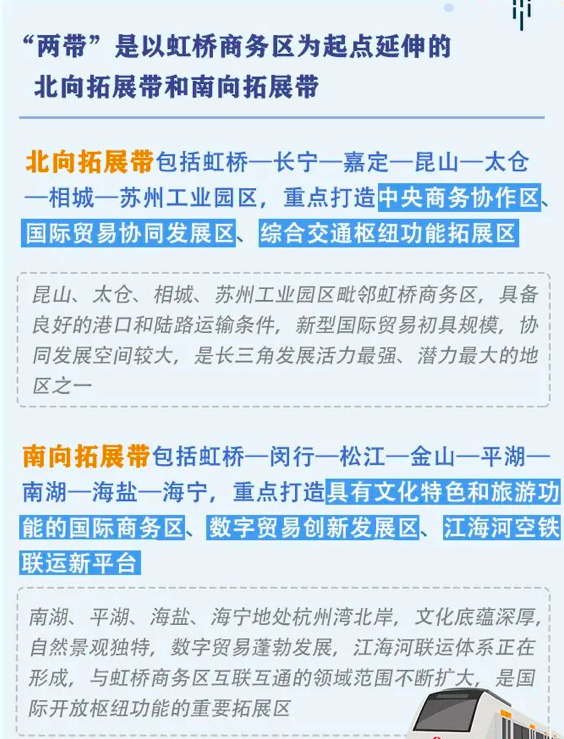 一核就是虹桥商务区。两带也明确提到了多个区域和城市。